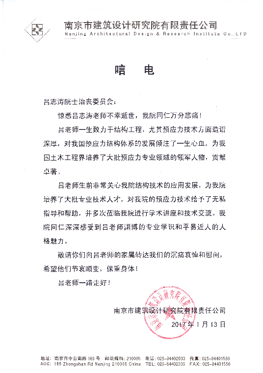 沉痛悼念吕院士 ——南京市建筑设计研究院