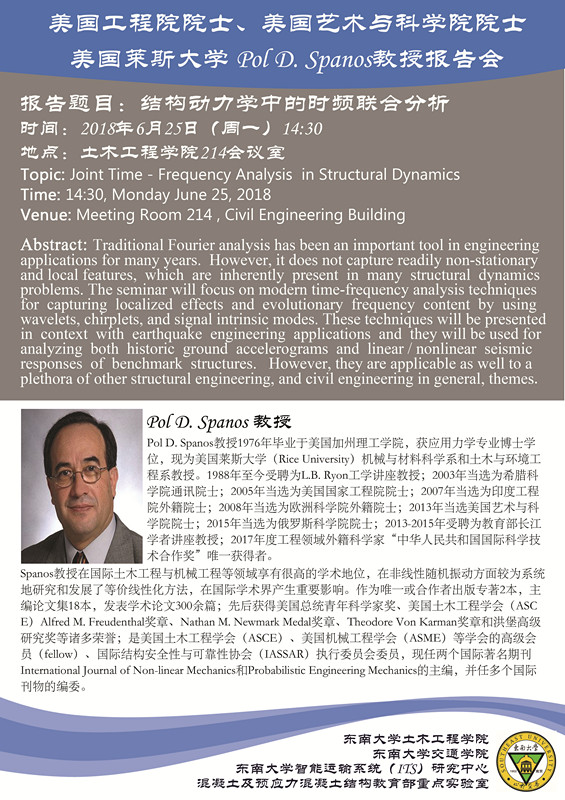 美国工程院院士、美国艺术与科学院院士、美国莱斯大学Pol D.Spanos教授报告会